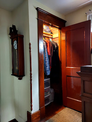 Next is the one of the nice things about this closet - at some point, the Moshers put in some extra wall hooks to hang little things here and there. There's not a lot of space in there, but I know they did come in handy a couple times.